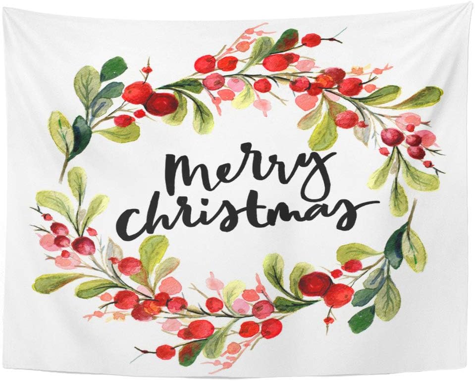 Amazon.com: Emvency Wall Tapestry Green Pattern Christmas Watercolor Painting Hand Lettering Berry Wreath for Red Winter Holiday Decor Wall Hanging Picnic Bedsheet Blanket 80x60 Inches: Home & Kitchen