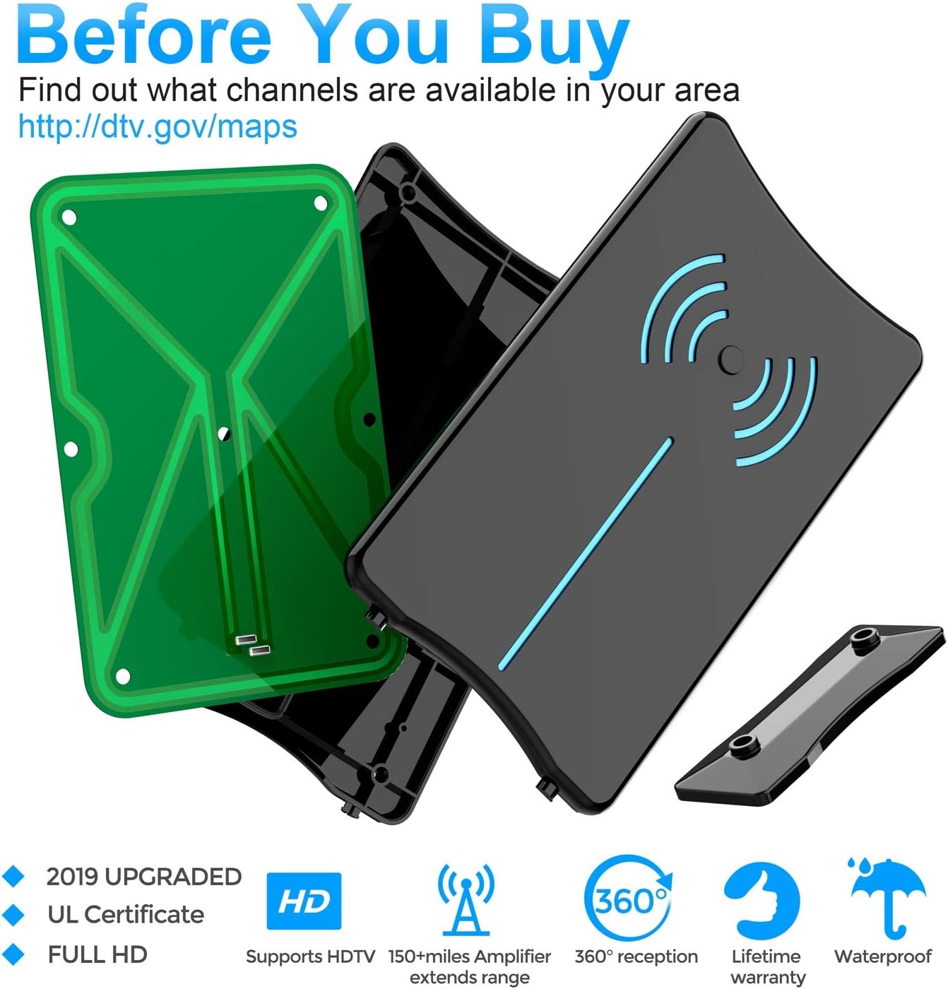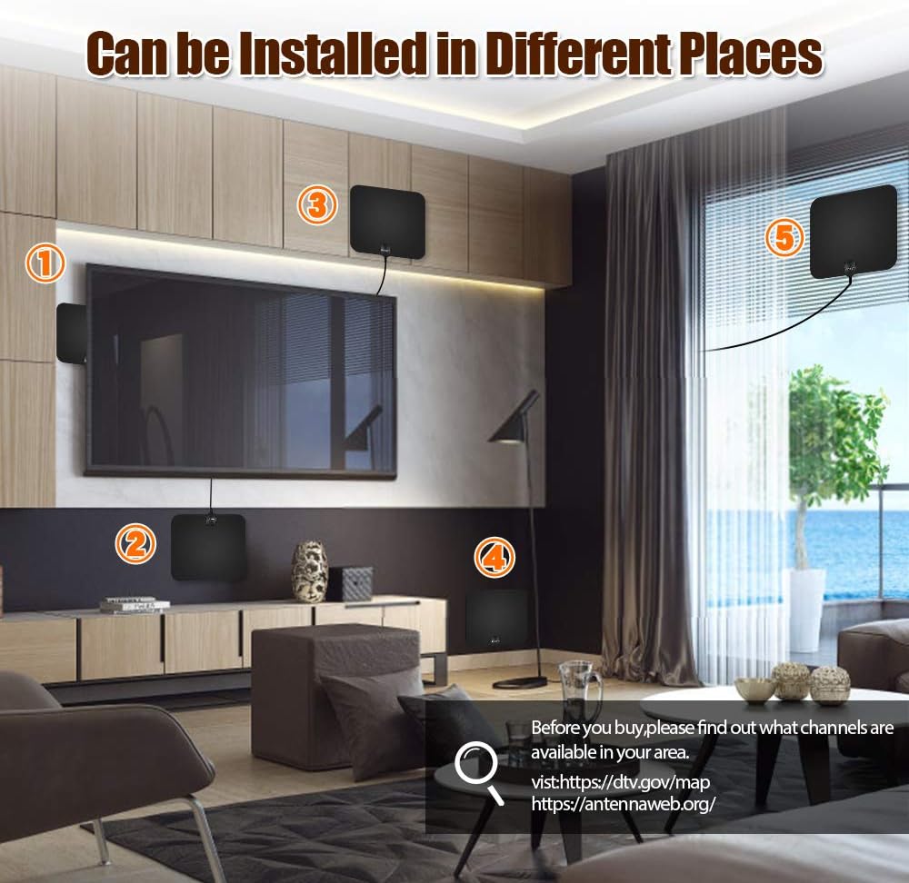 Ammeters Automotive Telustyle Tv Antenna Indoor Digital Amplified Hdtv Antennas 50 80 Miles Range With Detachable Signal Amplifier Ul Adapter And 16 5ft Longer Coax Cable Black Support 4k 1080p