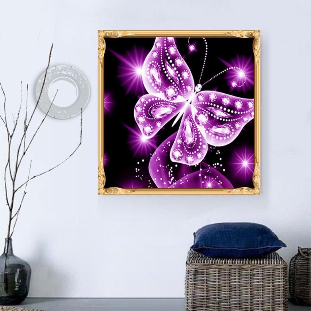 Costura y manualidades ❤️ Amlaiworld Kit completo de pintura de diamante 5D DIY punto de Cruz diamante kit completo mariposas decoración hogar Habitación pared moderna decoración fiesta 25x25cm, Púrpura Pintura Diamante 5D