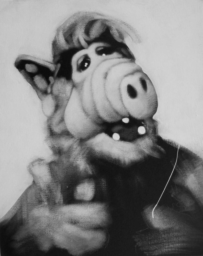 Alf zwart & wit kunst portret origineel schilderij | Etsy