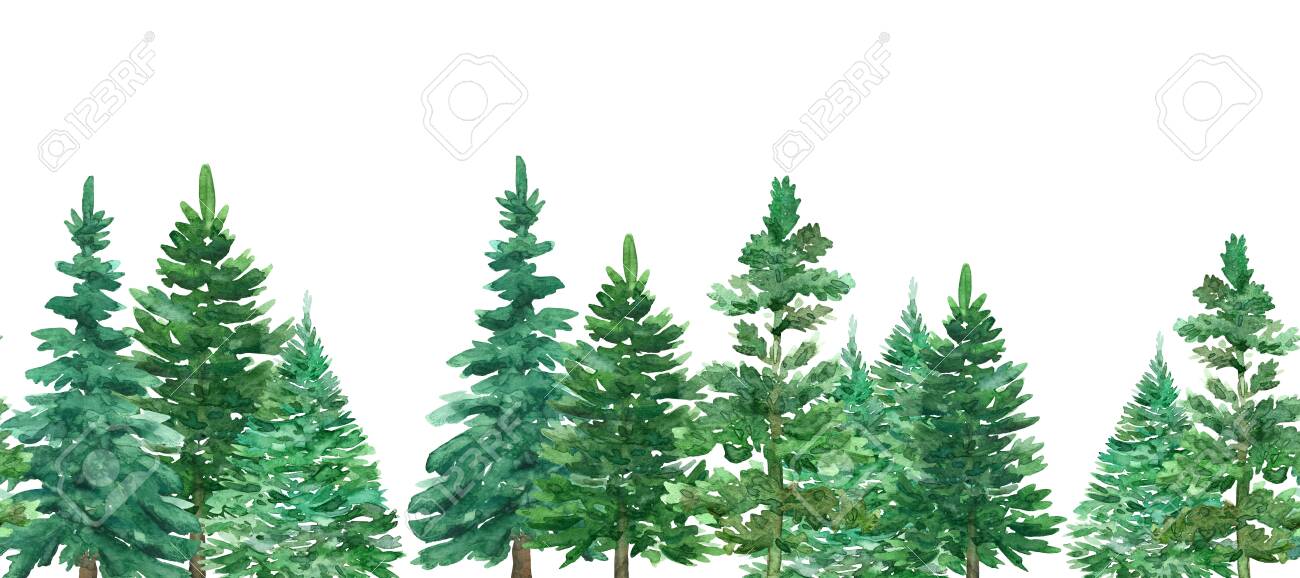 Seamless Border Of Watercolor Christmas Green Trees. Spruce And.. Stock Photo, Picture And Royalty Free Image. Image 130501928.