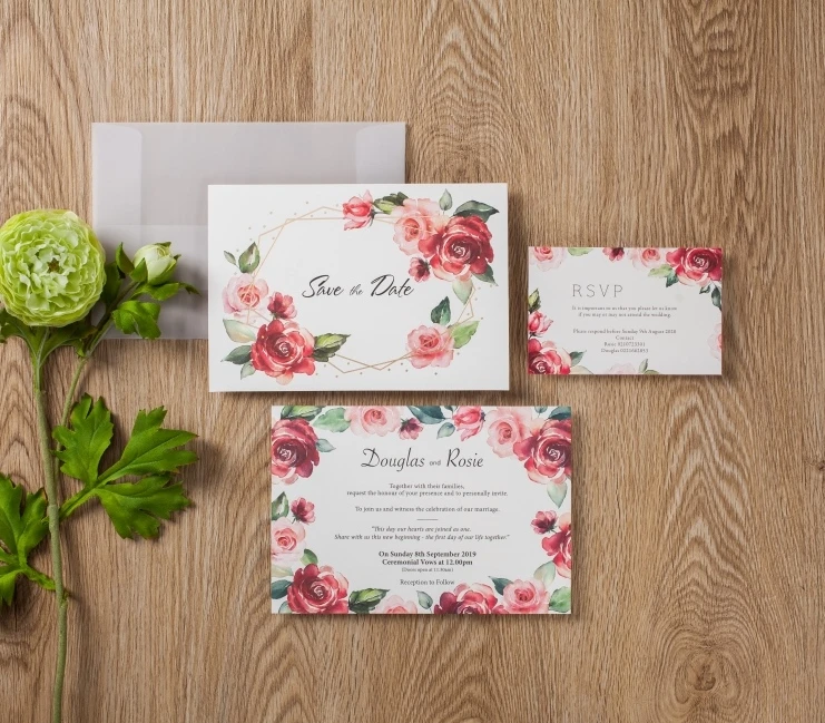 Wishmade Floral Red Rose Simple Design Wedding Invitation Card Gold Foil Border With Sulfuric Paper Envelope Aw8068 Cards Invitations Aliexpress
